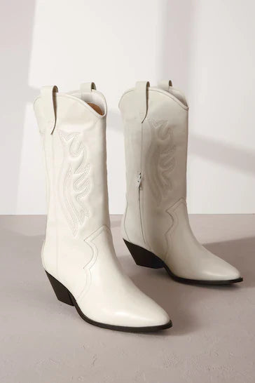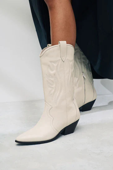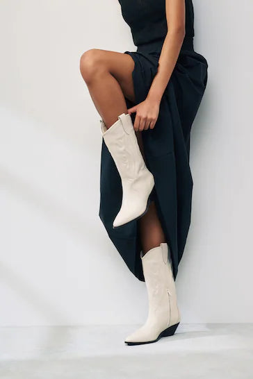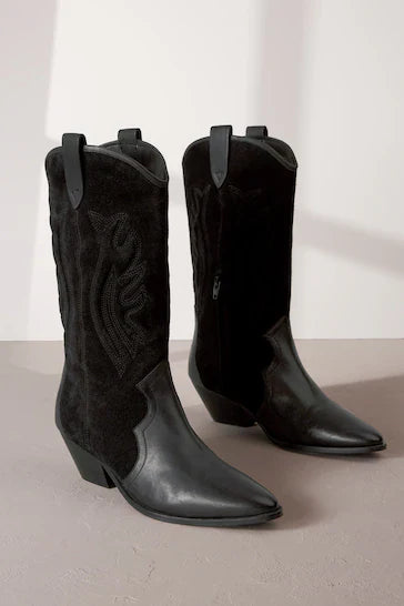Jump on the cowboy boots trend with our signature leather Forever Comfort suede western boots from Glemheel. These calf-length boots are presented in a classic cowboy style with block heels and side zip fastening. Crafted from premium leather, they feature pull tabs and decorative padded stitch detailing.